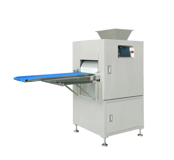 该机器可对含水率在40-78%的面团分块搓圆,智能化操作界面,预设和存储多组用户数据,设定面团的重量,调重系统会根据指令自行调整活塞杆位置和面团的进量,配合自动撒粉系统,根据不同面团性质调整不同的撒粉量,使得面团更接近于手工分块,搓圆板可更换和调整速度,以达到面团的最佳效果,运行速度和重量连续可调,高新能电机(可选多款)加减速机确保整机稳定运行,操作简单明了,SICK感应器,配西门子处理器(可选多种处理器),独特的结构和推进设计,方便清洁维护,特氟龙涂层料斗,更易如防粘清洁,最大投放面团重量为15KG, 可以将料斗增加为30KG。