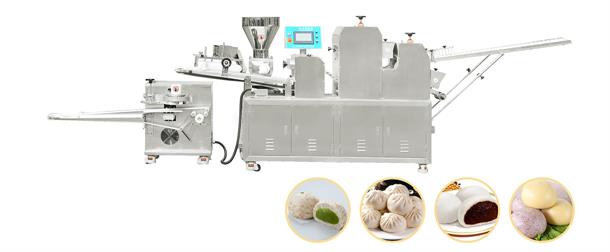 本机主要用于包子生产。圆形或者花型可以选择。一机多用,可以制作豆沙包、 莲蓉包、肉包、芝麻包、圆馒头等产品。生产速度快,容易清洁,产品外形接近手 工制作, 设备优点如下: 1. 通过2-3次滚压、打薄、成型处理,面皮光滑、富有韧性,产品口感好 2. 配搅拌杆或者食品级PE挤料杆,搅拌后的馅料更均匀,口感细腻 3. 高速,最高产能可达到150个/分钟 4. 进口高分子刀片,日本成型技术,不容易被磨损,精致的捏花刀片,产品花型接近手工制作 5. 产品大小均匀,光滑美观 6. 刀片无需润滑,保证产品卫生整洁 7. 铁氟龙技术处理,避免馅料粘在料斗上,堵塞机器 8. 高质量进口电气元件 设备主要技术参数如下: